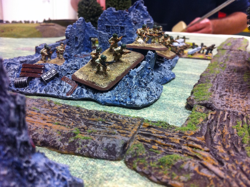Les allemands sont les attaquants,. Les ricains en défense autour de deux objectifs placés dans un village en ruine bien investi lors du déploiement par les représentants de la bannière étoilée.